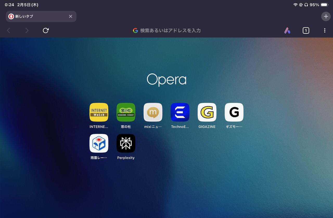 ちなみにアドレスバー右側に紫色で「A」と書かれたボタンがありますが。これは元「Aria」こと「Opera AI」を呼び出すボタンです。