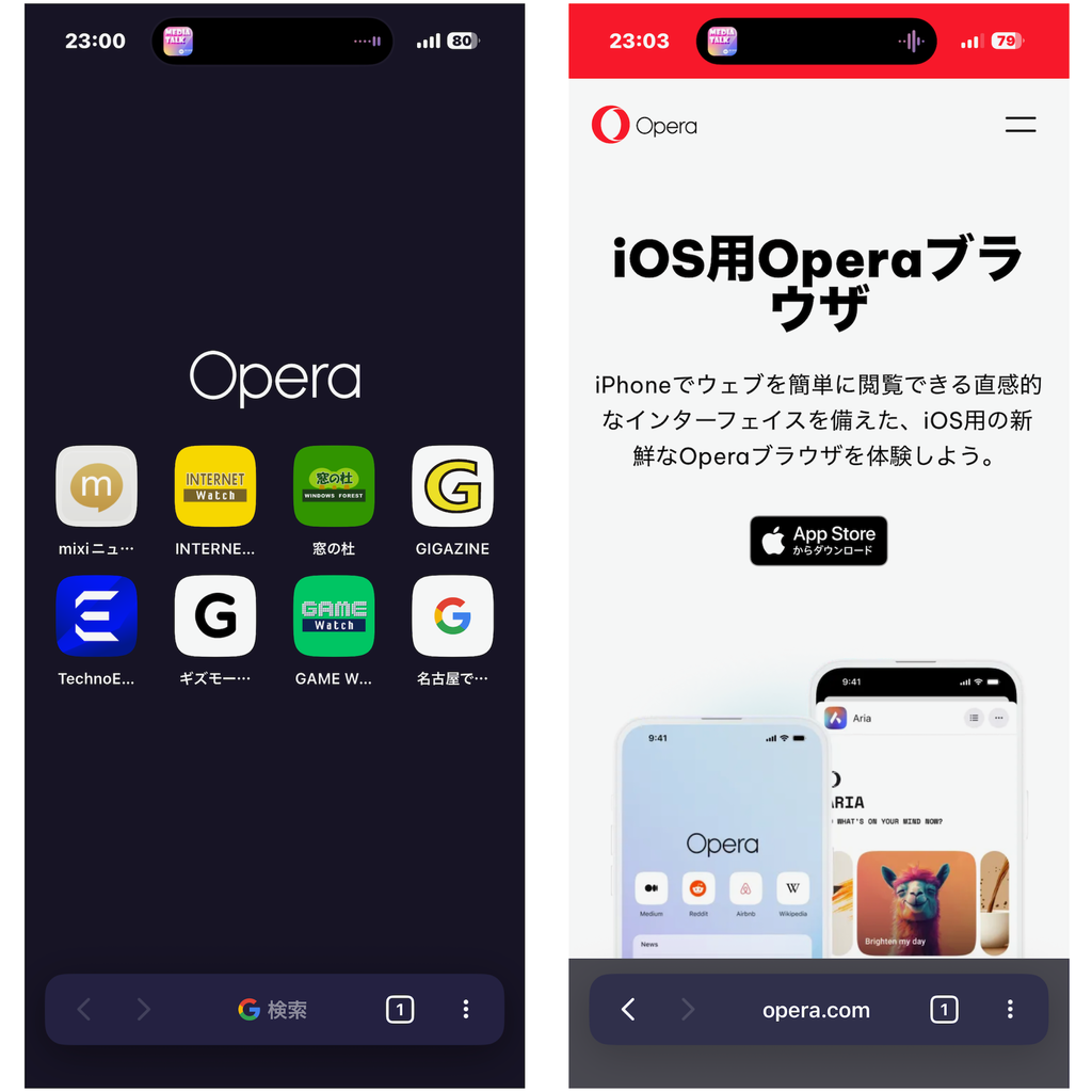 今の iOS 版 Opera は元々「Opera Touch」と言う名前の『片手だけでの操作がしやすい』と言うコンセプトのブラウザだったのですが。